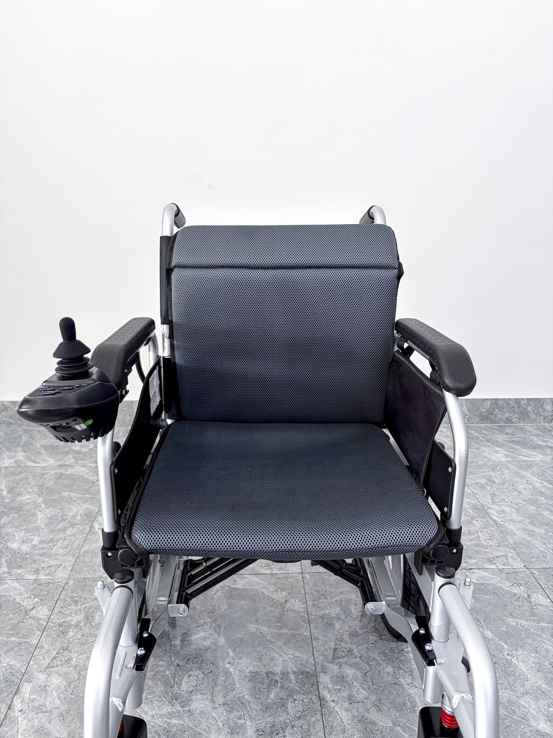 Despite its sturdy steel frame, the Jerry 1801X is fully foldable. By removing the battery box and folding the backrest, the chair compacts to 1154174cm. This makes it possible to transport the chair in the trunk of a car, enabling users to visit family, go to the park, or attend medical appointments with ease.